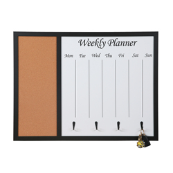 Tablero combinado con ganchos para llaves, planificadores semanales y tablero de corcho